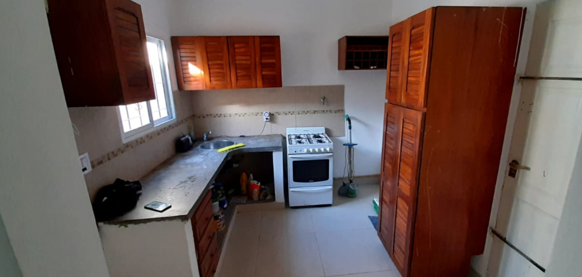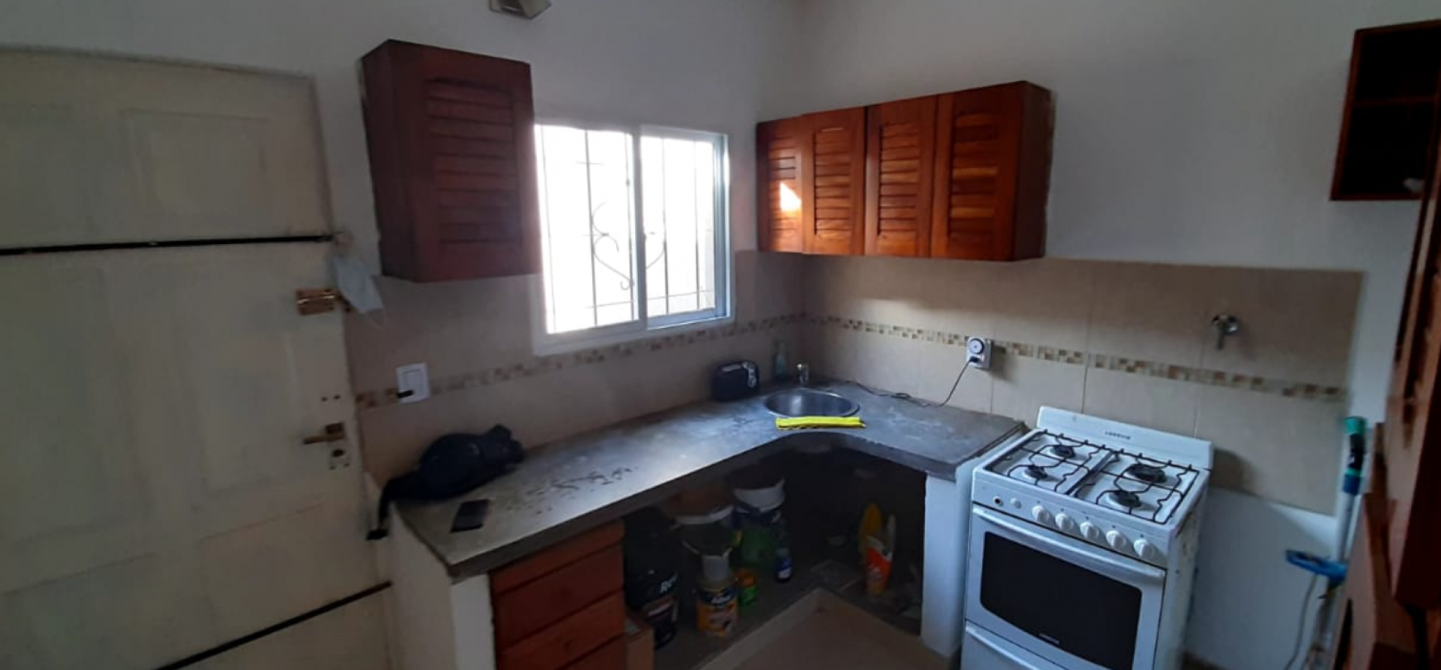 LIVING COMEDOR CON COCINA INTEGRADA. DOS HABITACIONES CON BAÑO COMPLETO EN BUEN ESTADO. PATIO CON COCHERA PARA UN SOLO AUTO.