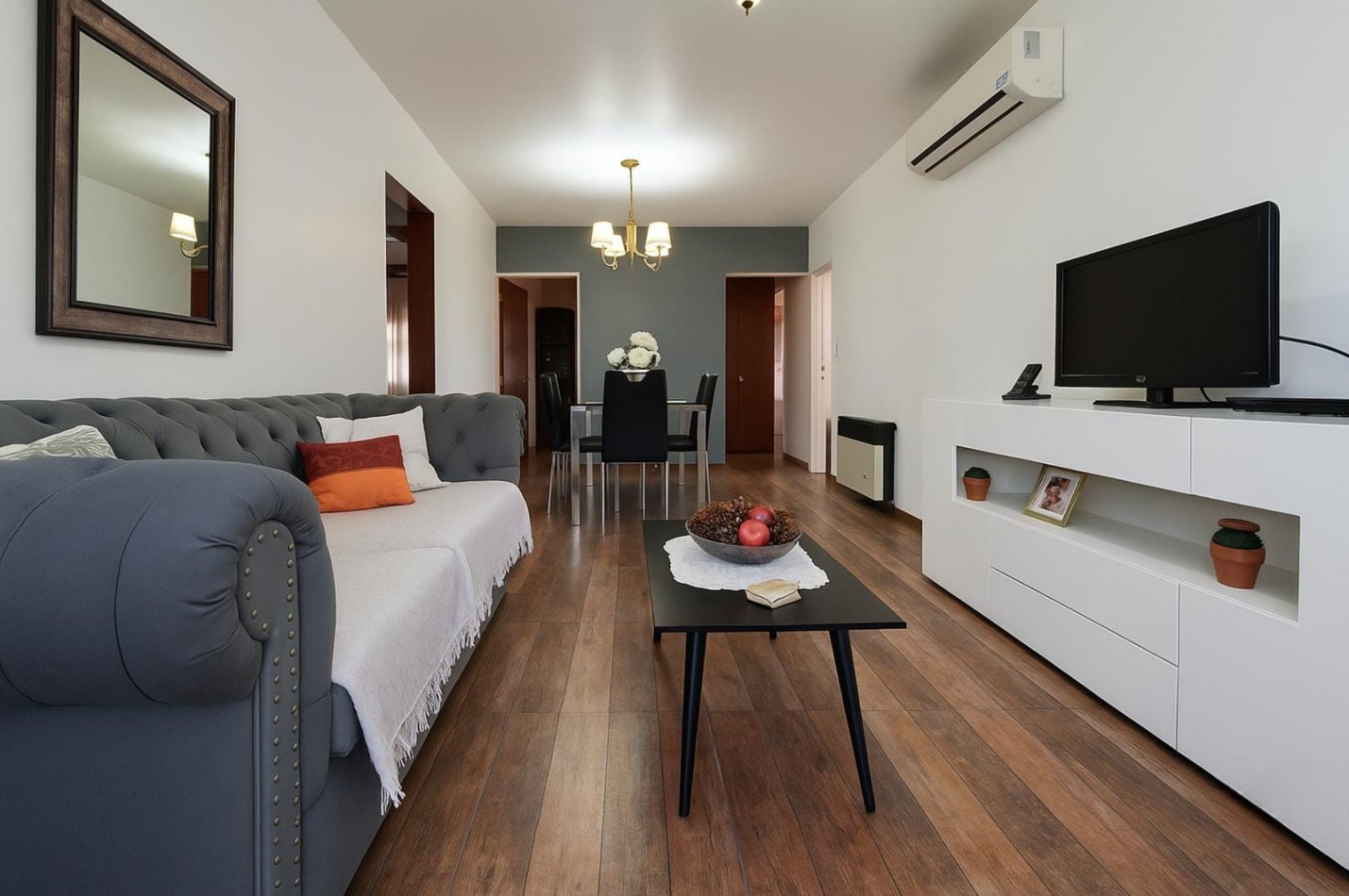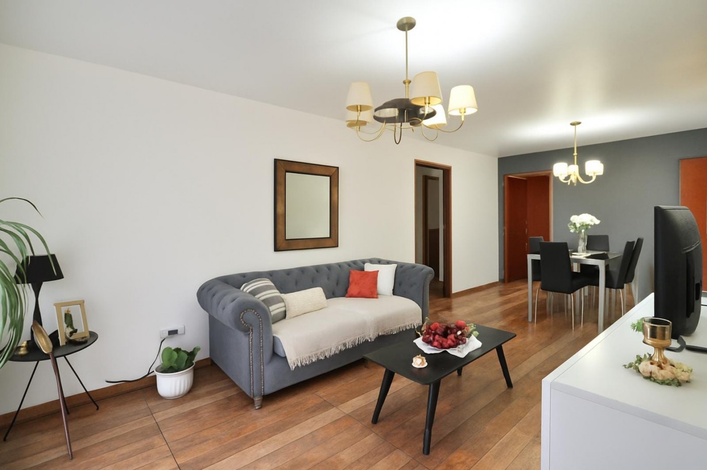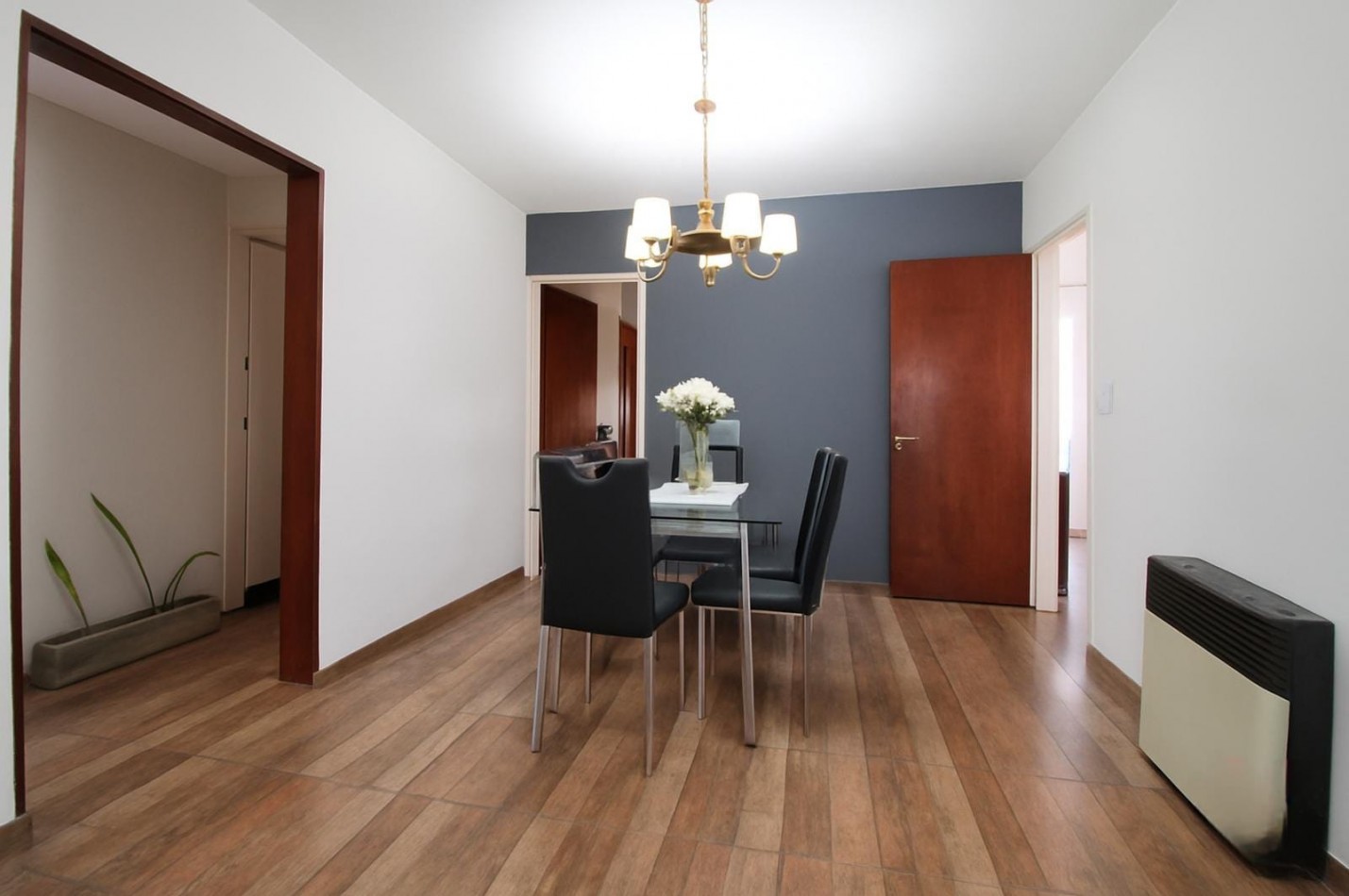 La cocina se comunica con el living-comedor, el cual posee un ventanal al frente. Adyacente a este sector, encontramos un ambiente adicional, adaptable como habitación o escritorio, con ventana al patio.