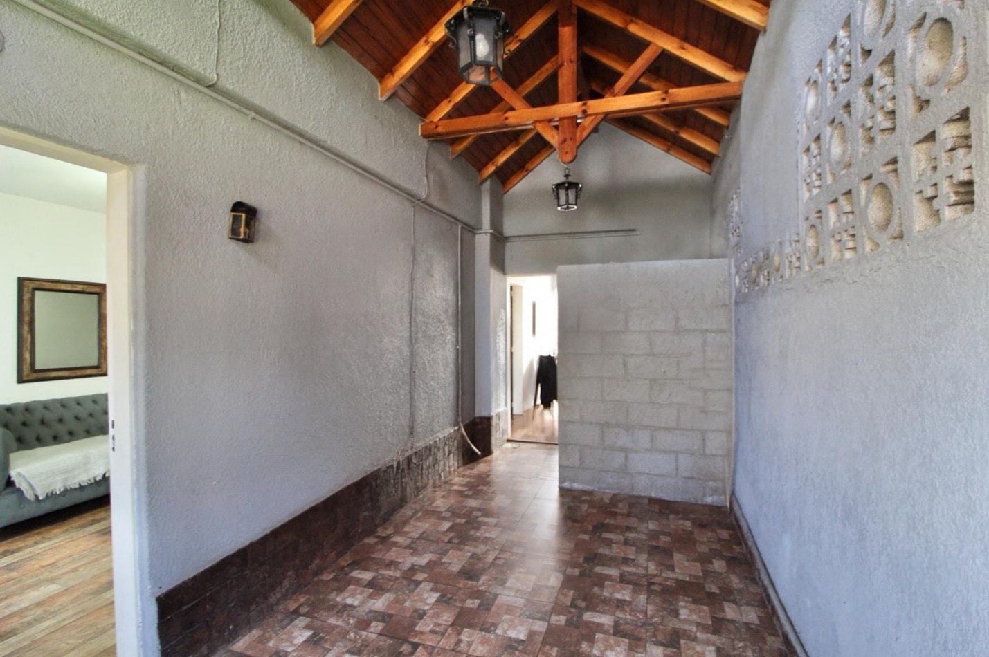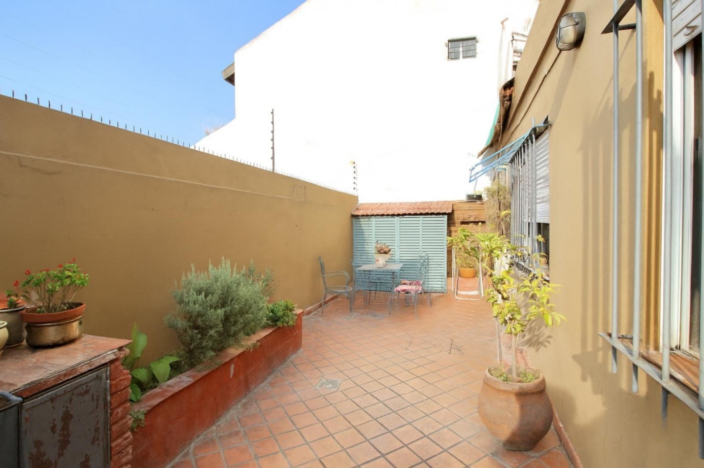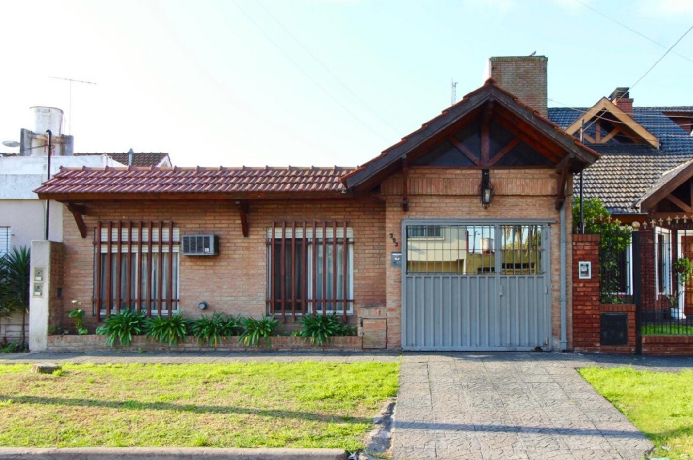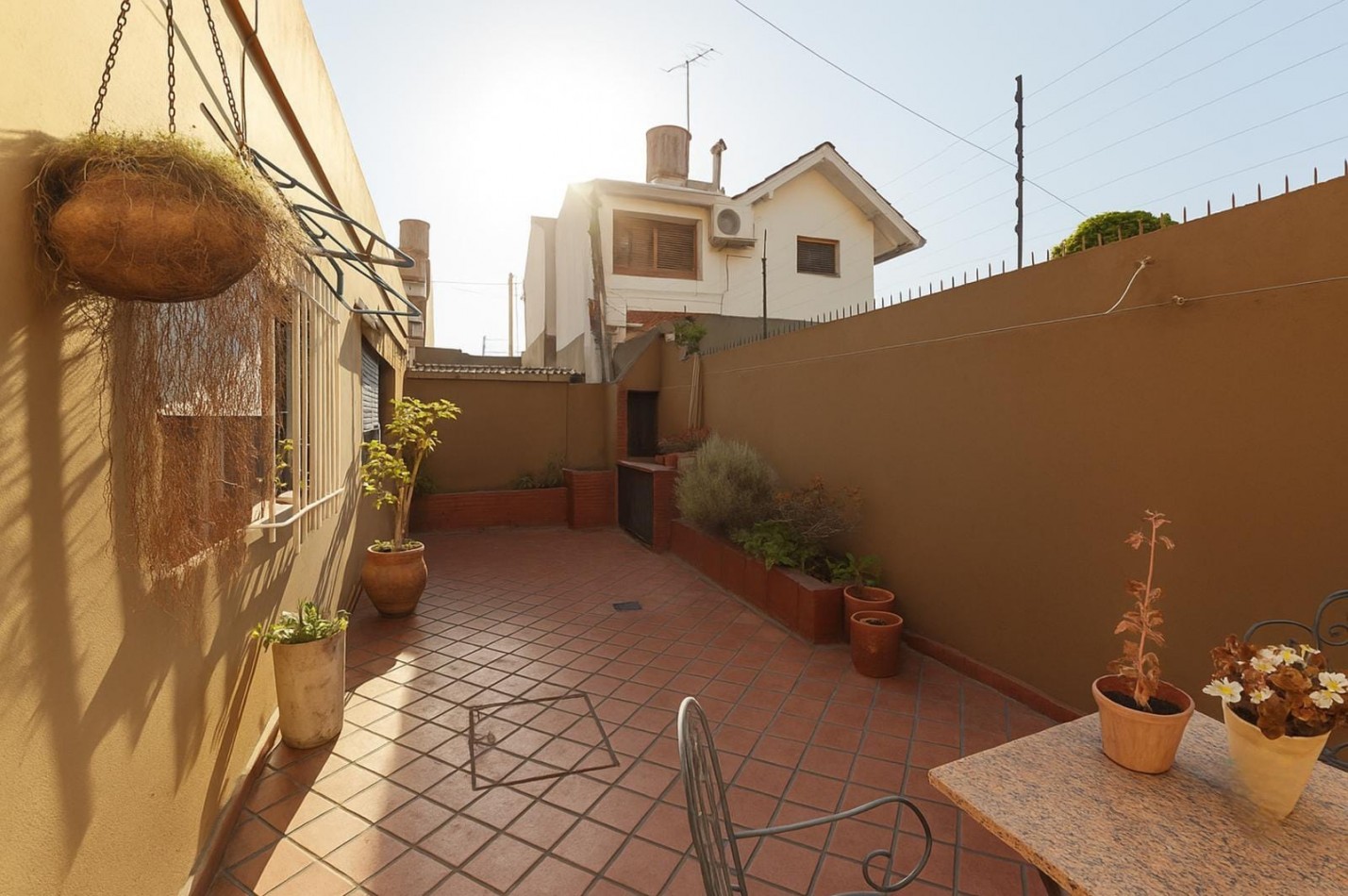 Desde la cochera, se accede a un lavadero, que a su vez conecta con una cocina con vista al patio. Este cuenta con una hermosa parrilla y un agradable espacio al aire libre.