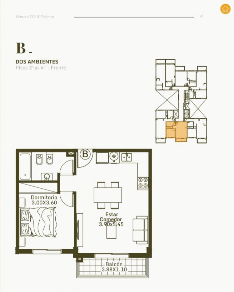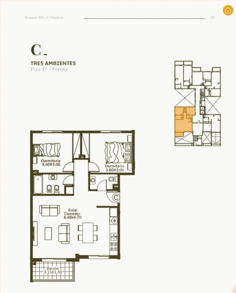 Superficie cubierta 61,87m2 Balcón de 9,95m2 Superficie total 71,82m2