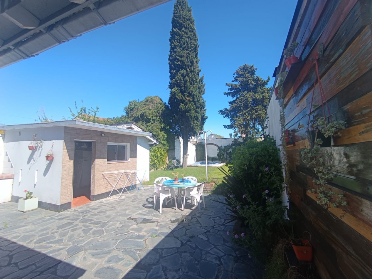 En el exterior cuenta con un amplio jardin con piscina, lavadero, baño, parrilla y horno de barro.