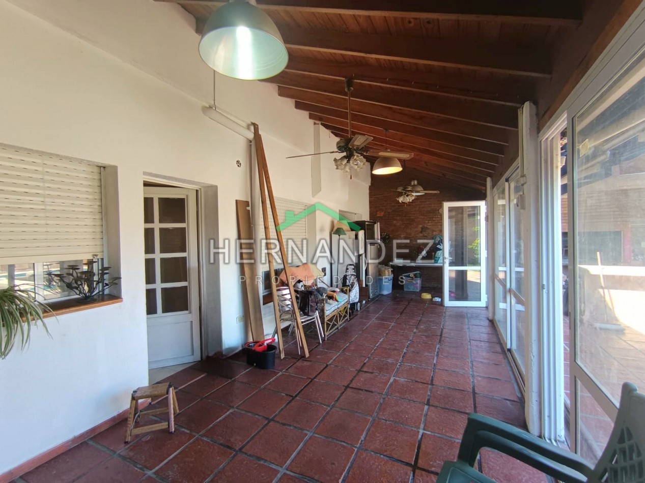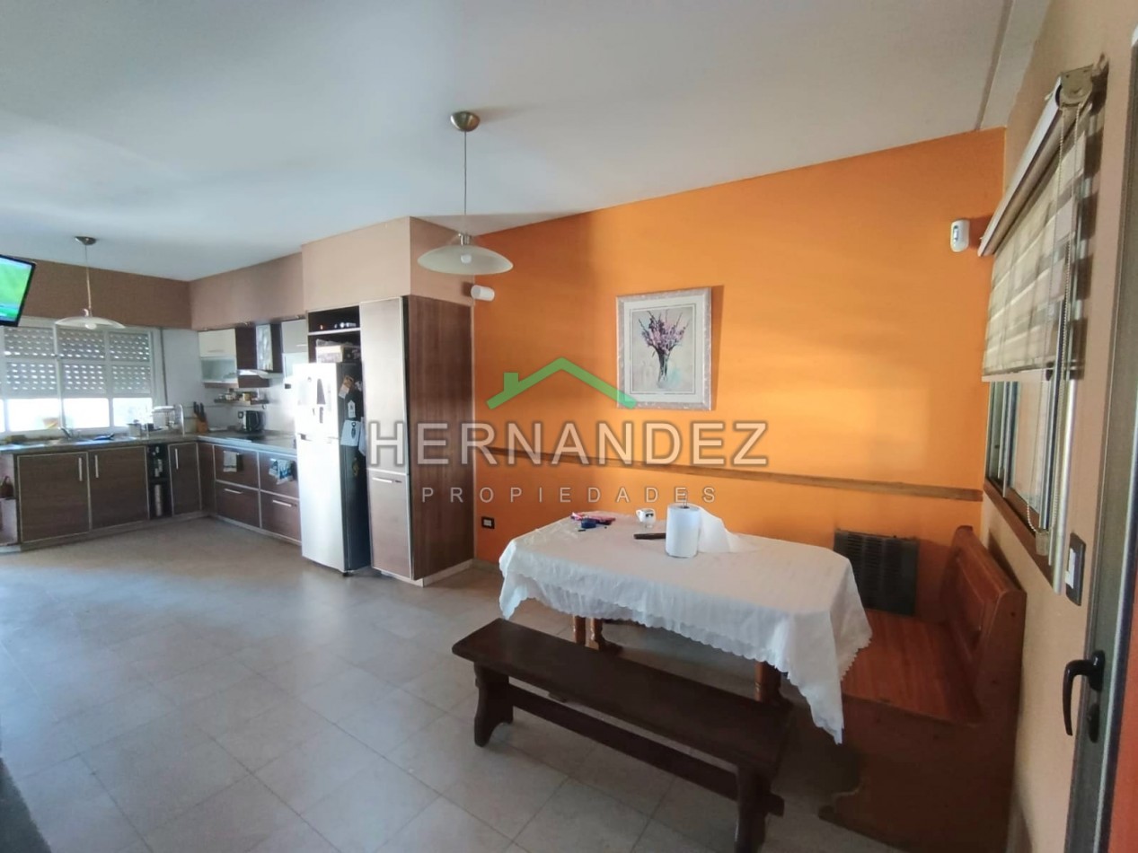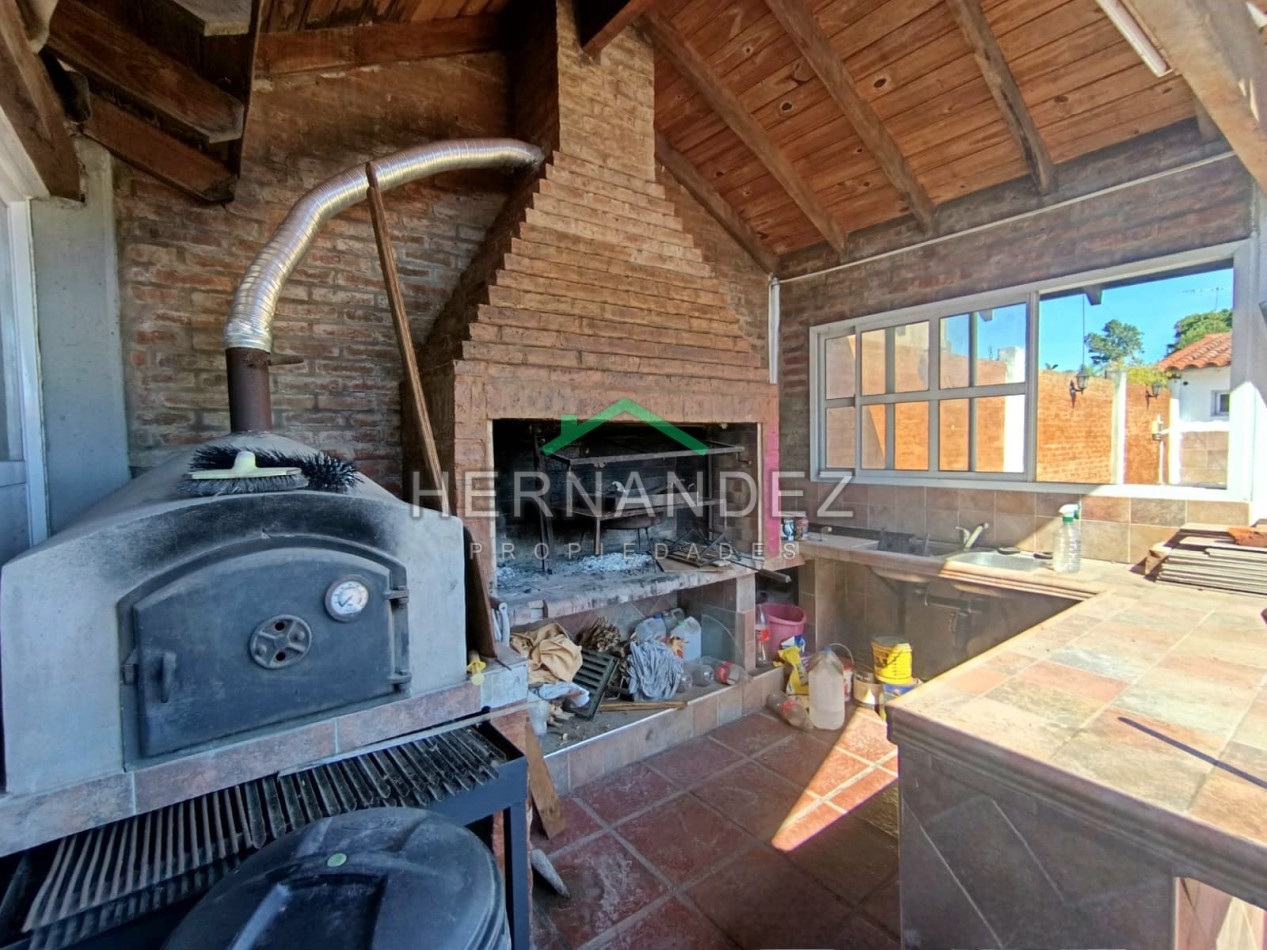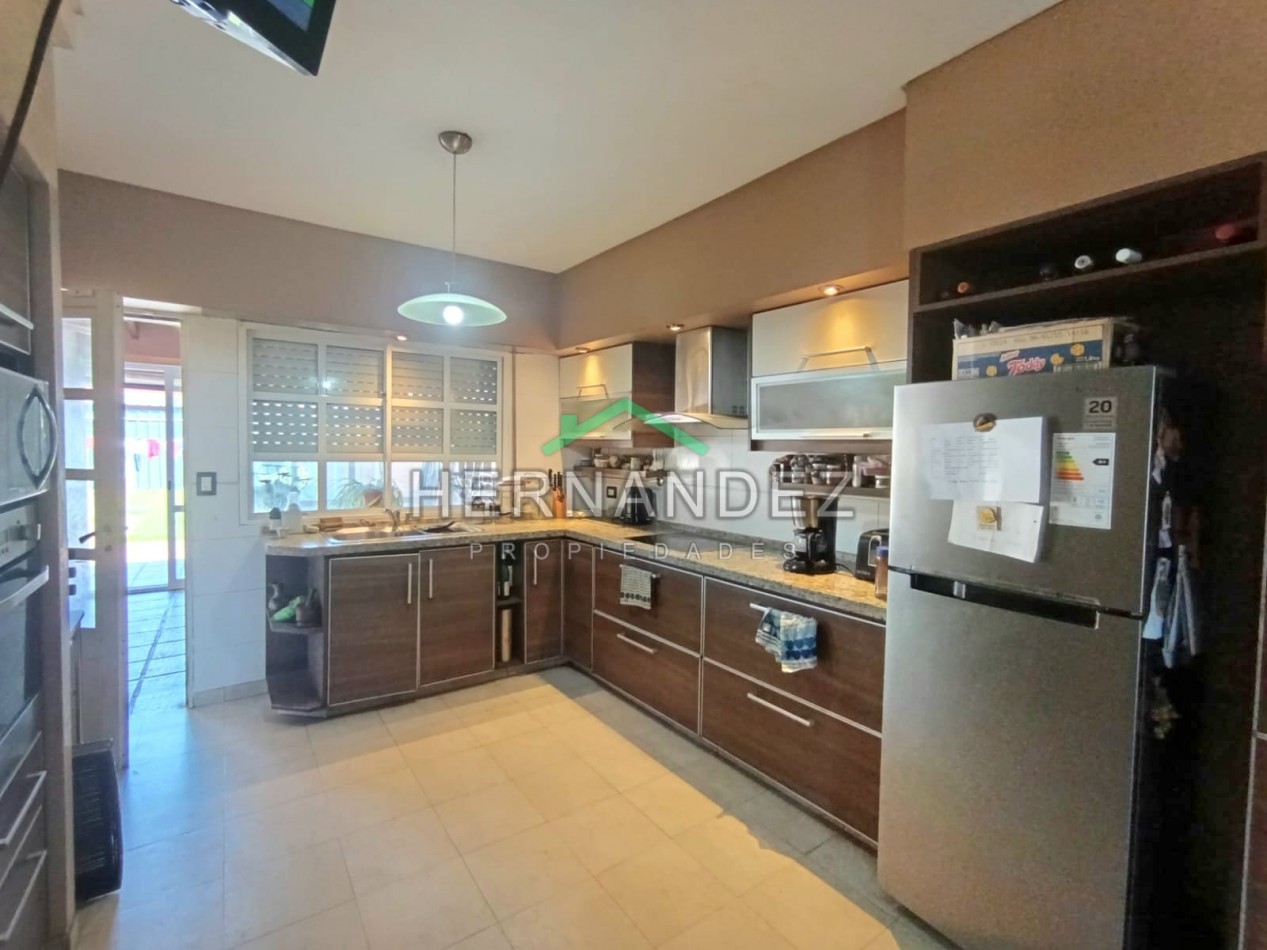 En planta baja cuenta con ingreso para auto con portón automático en cochera semicubierta, al ingresar nos encontramos con un amplio living comedor que da acceso a la izquierda a 3 dormitorios y un baño, a la derecha nos encontramos con la cocina y comedor diario refaccionados a nuevo, luego cuenta con una amplia galería cerrada, parrilla y horno de barro, piscina de cemento de 2,20 metros de profundidad y en el fondo cuenta con una dependencia de servicio: galpón, lavadero, baño y otro dormitorio.