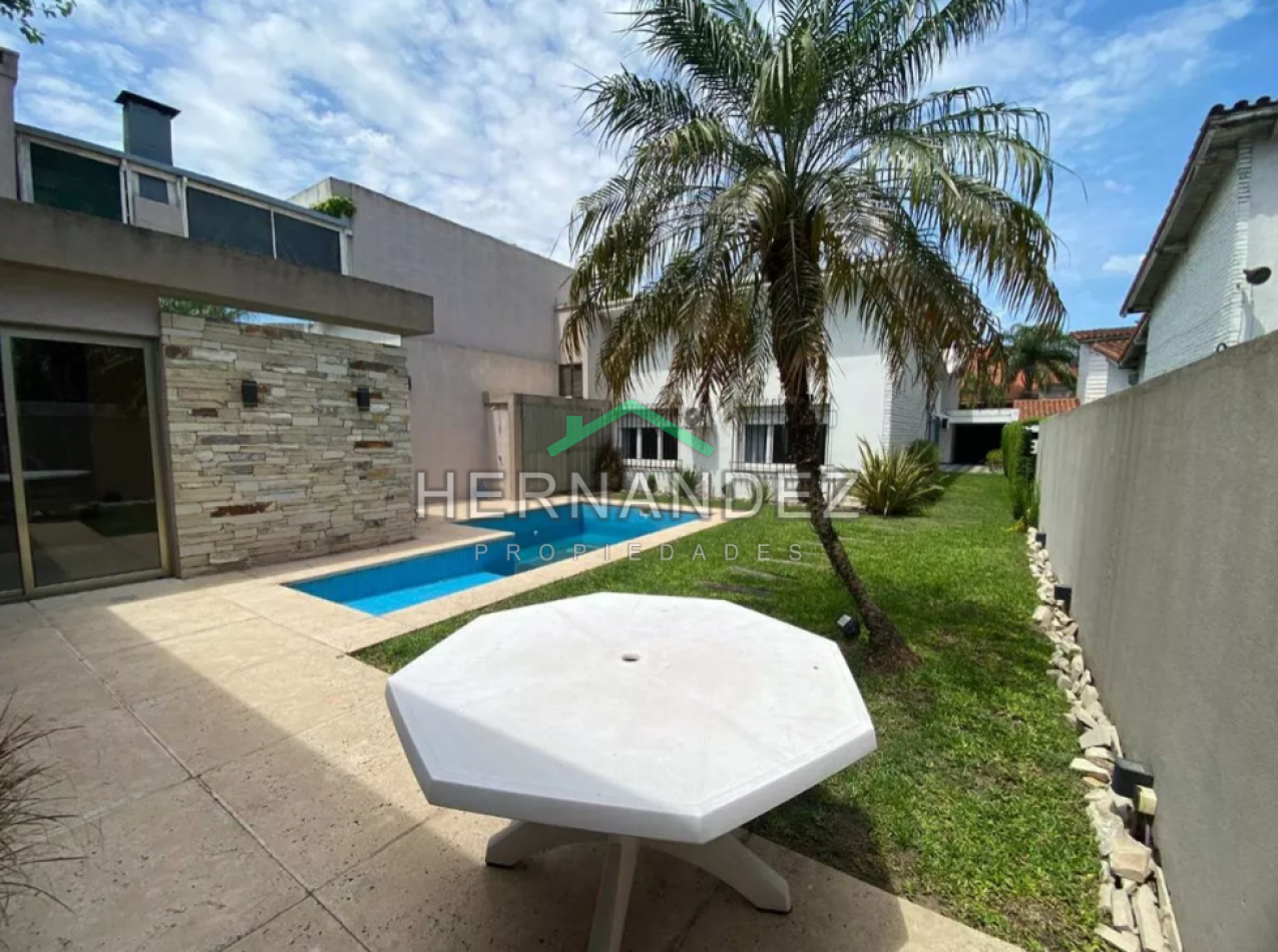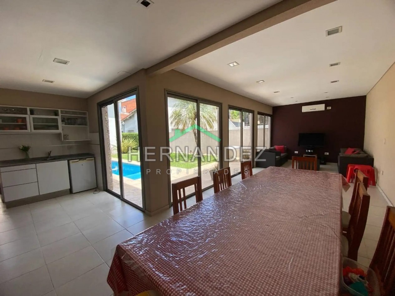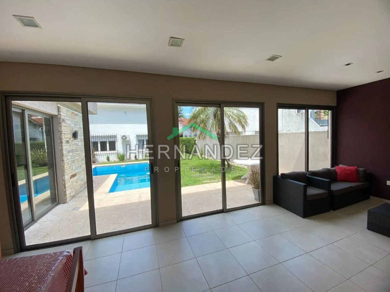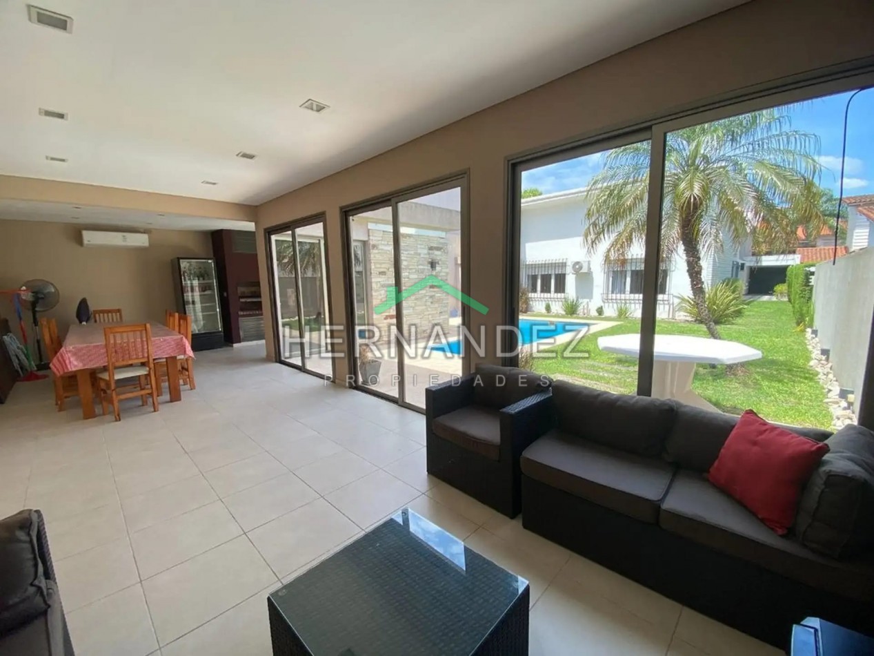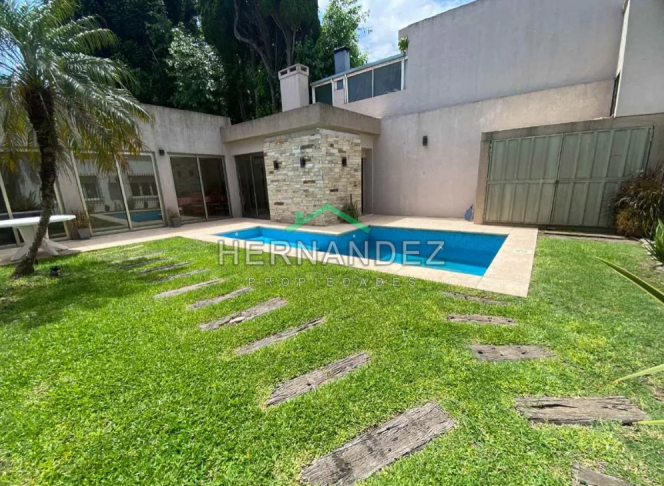 Garage pasante para varios autos, parque con pileta , quincho equipado con baño y cocina.