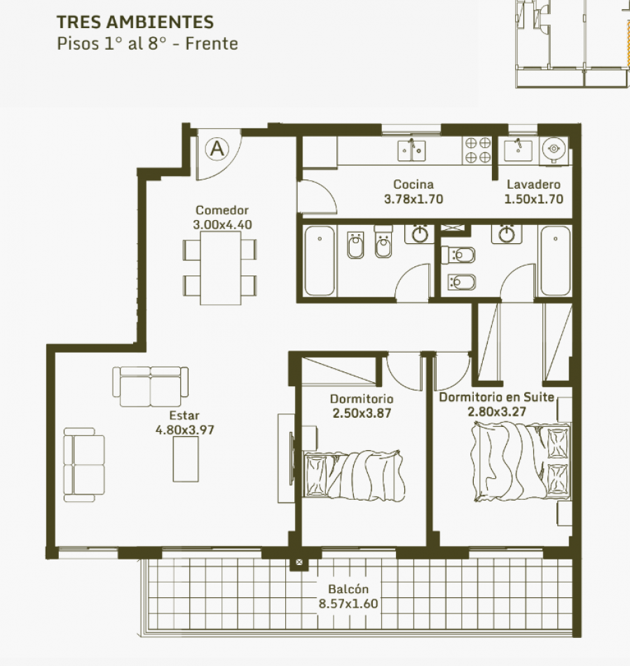 El edificio se desarrolla sobre 8 pisos, totalizando 56 departamentos de 1, 2 y 3 ambientes todos con balcón. Diseñados para adaptarse a diversos estilos de vida, estos departamentos son ideales para quienes buscan calidad y comodidad en un solo lugar.