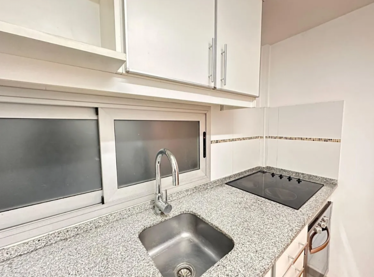Al ingresar, nos encontramos con el living-comedor con salida directa al balcón, ideal para disfrutar del aire libre. Los pisos son de porcelanato, de fácil mantenimiento y estilo moderno. La cocina está separada del ambiente principal y equipada completamente con artefactos eléctricos: anafe, horno empotrado, espacio para lavarropas y heladera, brindando comodidad y funcionalidad.