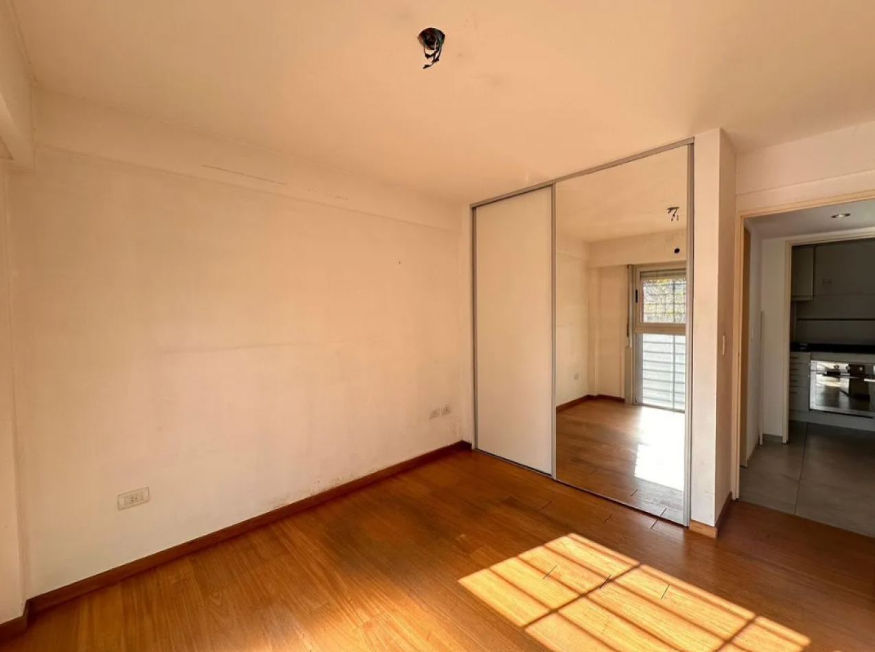 El baño es completo, con bañera, extractor y terminaciones en perfecto estado. El dormitorio posee pisos flotantes, placard con interiores terminados y ventana con rejas y persiana, al igual que el ventanal del living, brindando seguridad y privacidad.