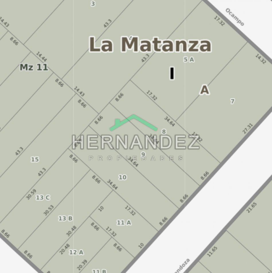 Lote de 8,66 de frente por 35 metros de fondo. TOTAL 300m2
